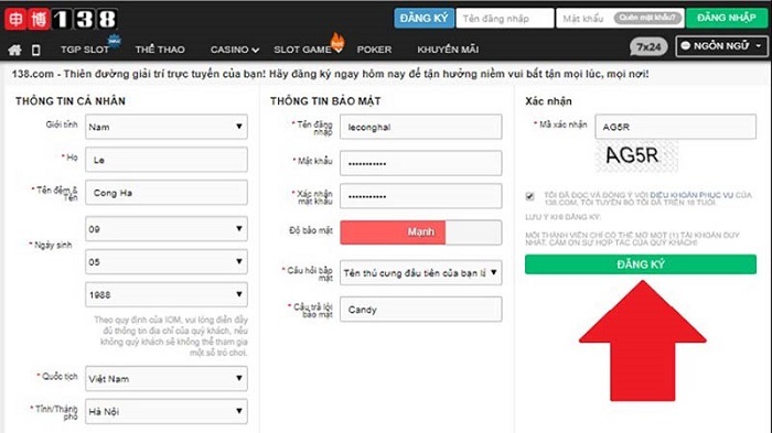 Bước 4: Sau khi kiểm tra các thông tin, nhấn “Đăng Ký” để hoàn tất quá trình.