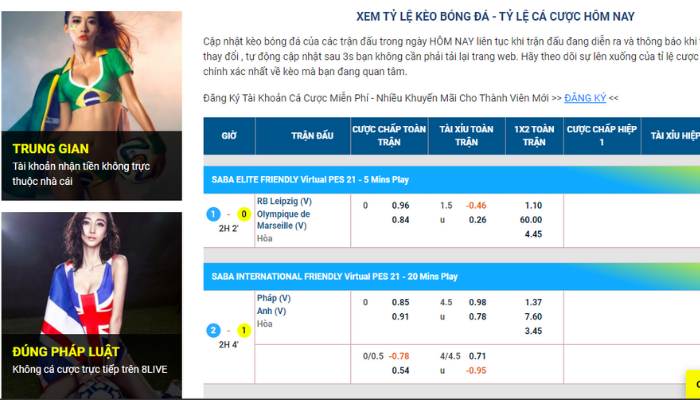 8Live – nhà cái uy tín nhất hiện nay chuyên cung cấp cho người chơi cá độ bóng đá những tỷ lệ kèo cá cược bóng đá trực tuyến mới và chính xác nhất. Người chơi cá độ bóng đá đang xem bảng tỷ lệ kèo được cập nhật trực tiếp từ hệ thống kèo nhà cái BONG88, nhà cái uy tín nhất ở khu vực Châu Á và Thế Giới. Bảng tỷ lệ kèo bóng đá của 8LIVE là bảng tỷ lệ cá cược bóng đá trực tuyến, có đầy đủ tỷ lệ cá cược của các giải đấu gồm: tỷ lệ kèo cá cược Ngoại Hạng Anh, tỷ lệ cá cược C1, C2, tỷ lệ cá cược bóng đá Tây Ban Nha, Italia, Đức, Pháp tỷ lệ kèo các kì World cup… Cứ 3s, bảng tỷ lệ kèo sẽ cập nhật kèo mới, người chơi cá độ không cần phải bấm F5 (làm mới trang). Tỷ lệ kèo cá cược bóng đá hôm nay đang được hiển thị là tỷ lệ kèo châu á (như Malaysia – Macao), ngoài ra còn có tỷ lệ kèo tài xỉu. Ngoài ra, anh em muốn xem tỷ lệ kèo cá cược châu âu, kèo tỷ số hay các loại kèo cá cược bóng đá khác, chỉ cần liên hệ trực tiếp nhân viên tư vấn để được giải đá.