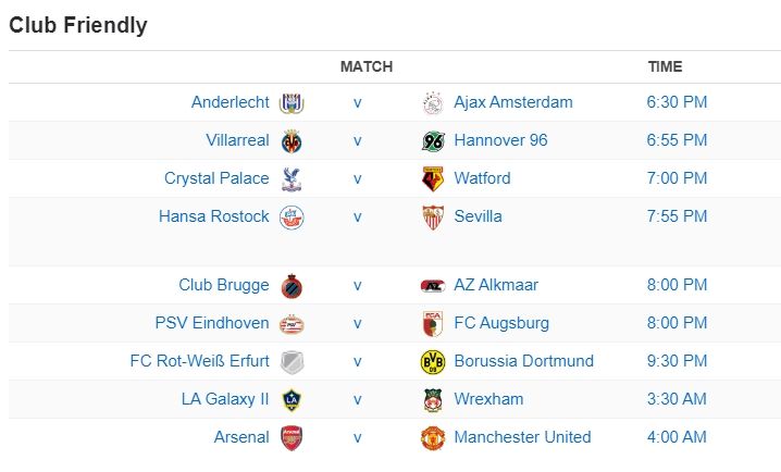 Ngoài World Cup bóng đá nữ đang diễn ra vô cùng hấp dẫn thì trong lịch thi đấu bóng đá hôm nay mà nhà cái uy tín cập nhật còn mang tới các trận cầu giao hữu. Đặc biệt là màn so tài giữa Arsenal và Manchester Utd.