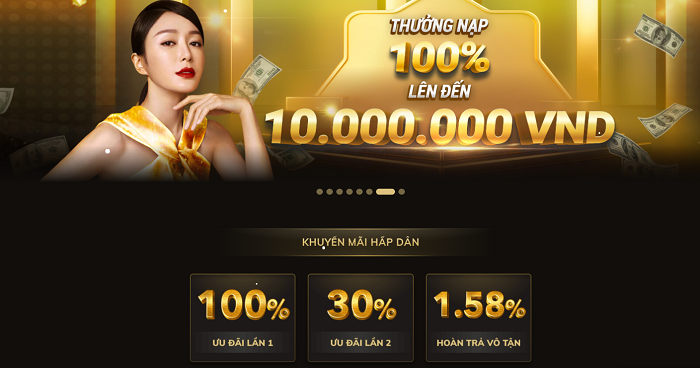 - Tặng 100% trong lần nạp tiền đầu tiên cho mọi thành viên mới: người chơi nạp tiền thông qua các hình thức là nạp vào ngân hàng, chuyển Fastpay, nạp MOMO với số tiền tối thiểu là 50.000 VNĐ sẽ được nhận thưởng 100%, tối đa lên tới 10.000.000 VNĐ. Người chơi có thể rút tiền về sau khi đã hoàn thành 20 vòng cược tương ứng với số tiền đã nạp.