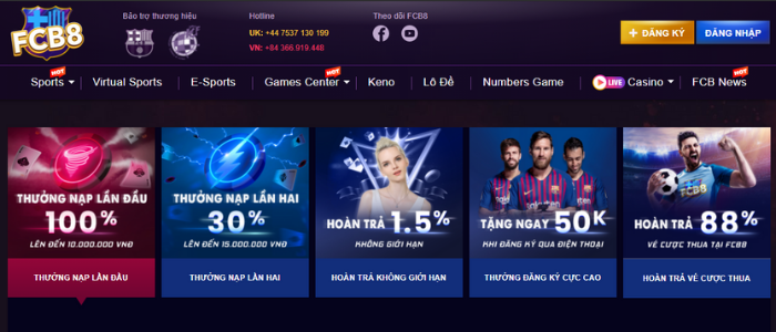 Hãy thử ghé qua nhà cái FCB8 chắc chắn bạn sẽ phải chết mê với nhà cái này đấy với giao diện đẹp mắt, ưu đãi tuyệt vời của FCB8 qua từng trò chơi đặc biệt số lượng người chơi tại nhà cái FCB8 này thăng theo từng giờ chứ không hẳn là từng ngày nữa. Với những gì mà nhà cái này đạt được, thì FCB8 xứng đáng là nhà cái uy tín nhất hiện nay. Nên bạn có thể yên tâm mà chọn lựa nhà cái này để dừng chân. Vậy còn chờ gì mà không vào và đăng ký thành viên tại đây, hàng triệu người chơi khác đang chờ bạn chơi cùng đấy!
